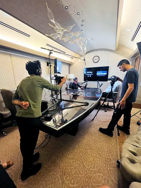 אנחנו מביאים את הכול – מיקרופונים, מצלמות, תאורה וציוד הקלטה מקצועי – ומקימים אולפן מוקפד אצלכם בלוקיישן. בסיום ההקלטה, אנחנו אורזים הכול וחוזרים – אתם נשארים רק עם התוצאה.